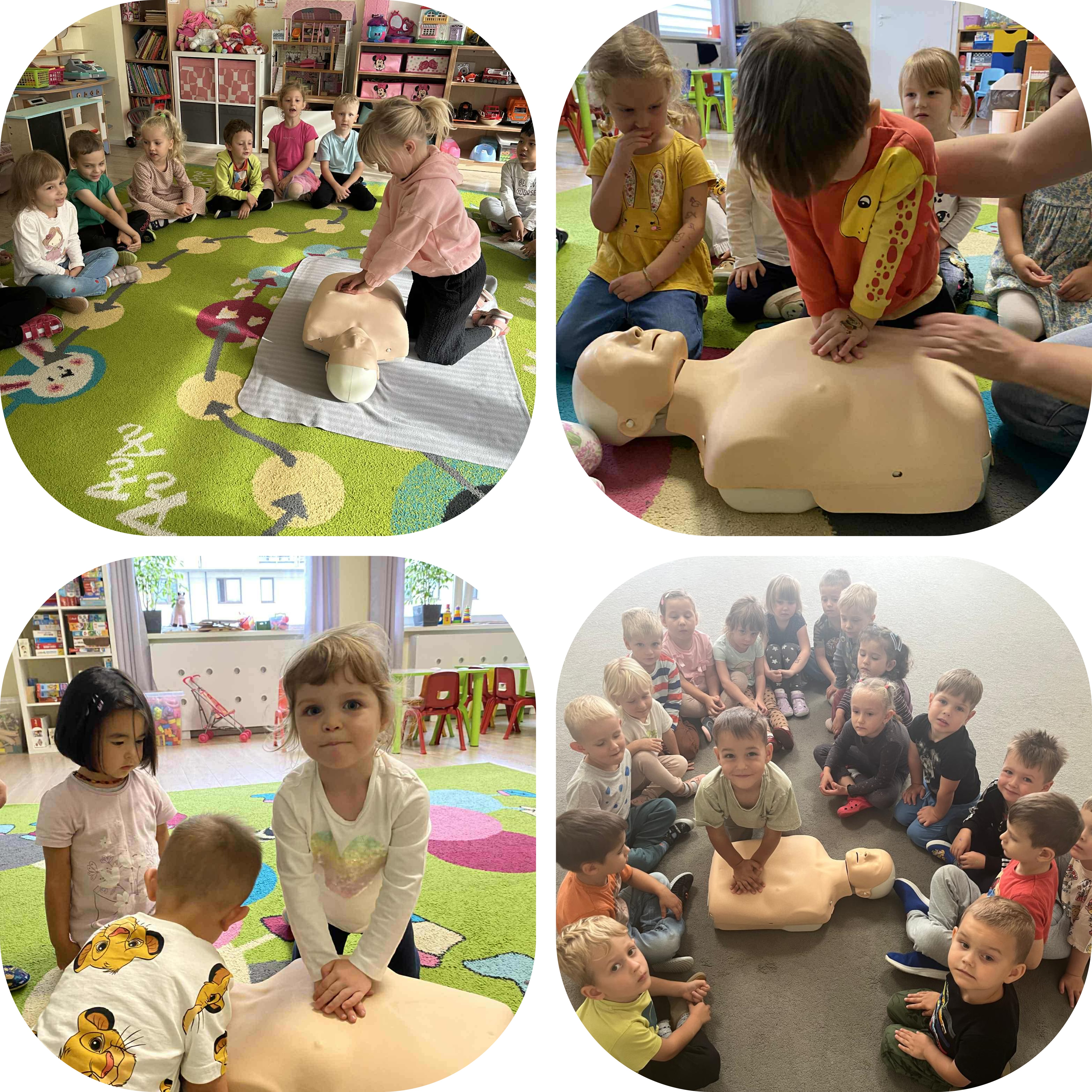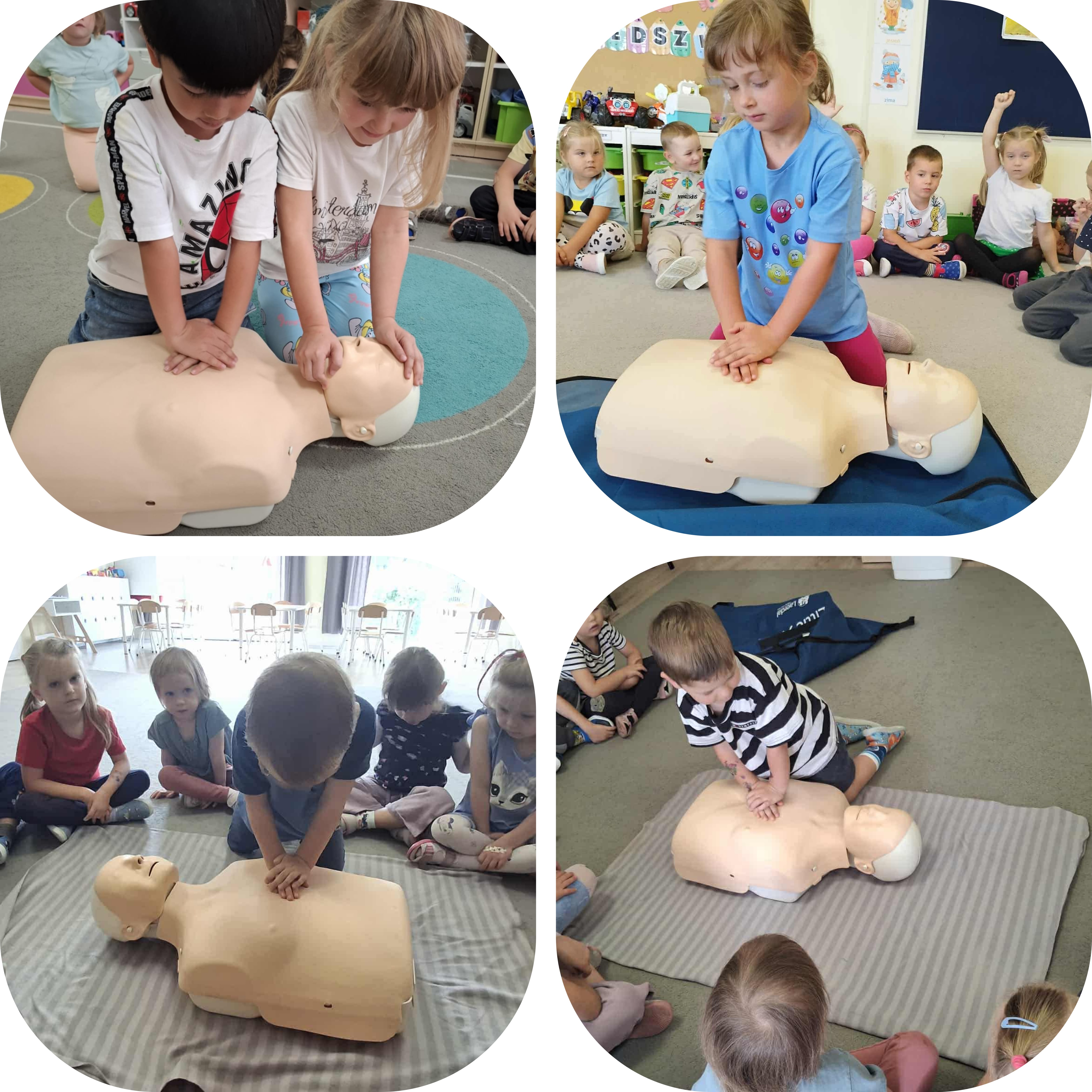 Przedszkolaki z dużym zaangażowaniem przygotowaÅ‚y krótkie scenki i praktycznie ćwiczyÅ‚y, jak udzielać pierwszej pomocy. DziÄ™ki zabawie i nauce w przyjaznej atmosferze, dzieci poznaÅ‚y podstawowe zasady reagowania w sytuacjach zagrożenia zdrowia i życia. To ważne doÅ›wiadczenie nie tylko rozbudziÅ‚o ich empatiÄ™, ale również nauczyÅ‚o odpowiedzialnoÅ›ci za bezpieczeÅ„stwo swoje i innych.