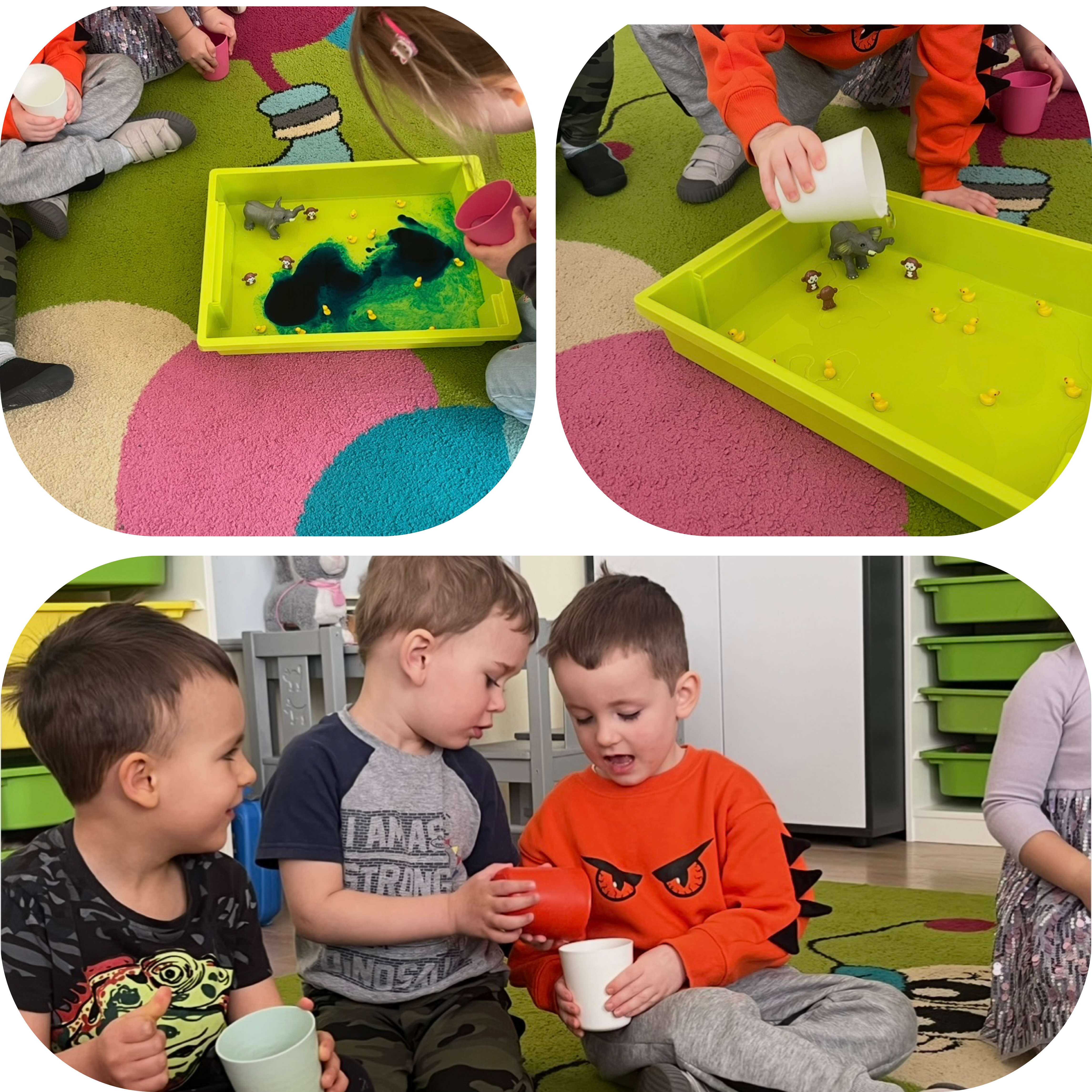 Nie zabrakÅ‚o także eksperymentów i zabaw badawczych – dzieci miaÅ‚y okazjÄ™ obserwować, jak woda zmienia swój stan skupienia, co pÅ‚ywa, a co tonie, oraz jak można jÄ… oczyszczać. Dużo radoÅ›ci sprawiÅ‚y również zabawy ruchowe i plastyczne zwiÄ…zane z tematykÄ… wody. Przedszkolaki uczyÅ‚y siÄ™ także, w jaki sposób każdy z nas może dbać o wodÄ™ na co dzieÅ„ – zakrÄ™cajÄ…c kran podczas mycia zÄ™bów czy wykorzystujÄ…c wodÄ™ w sposób oszczÄ™dny.