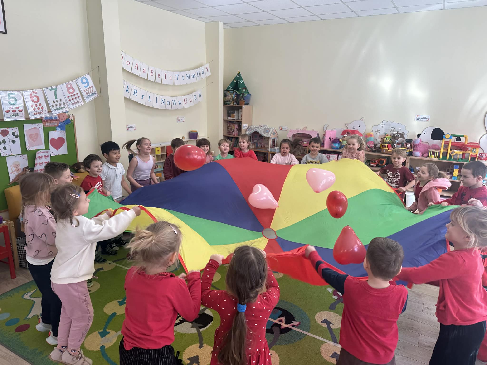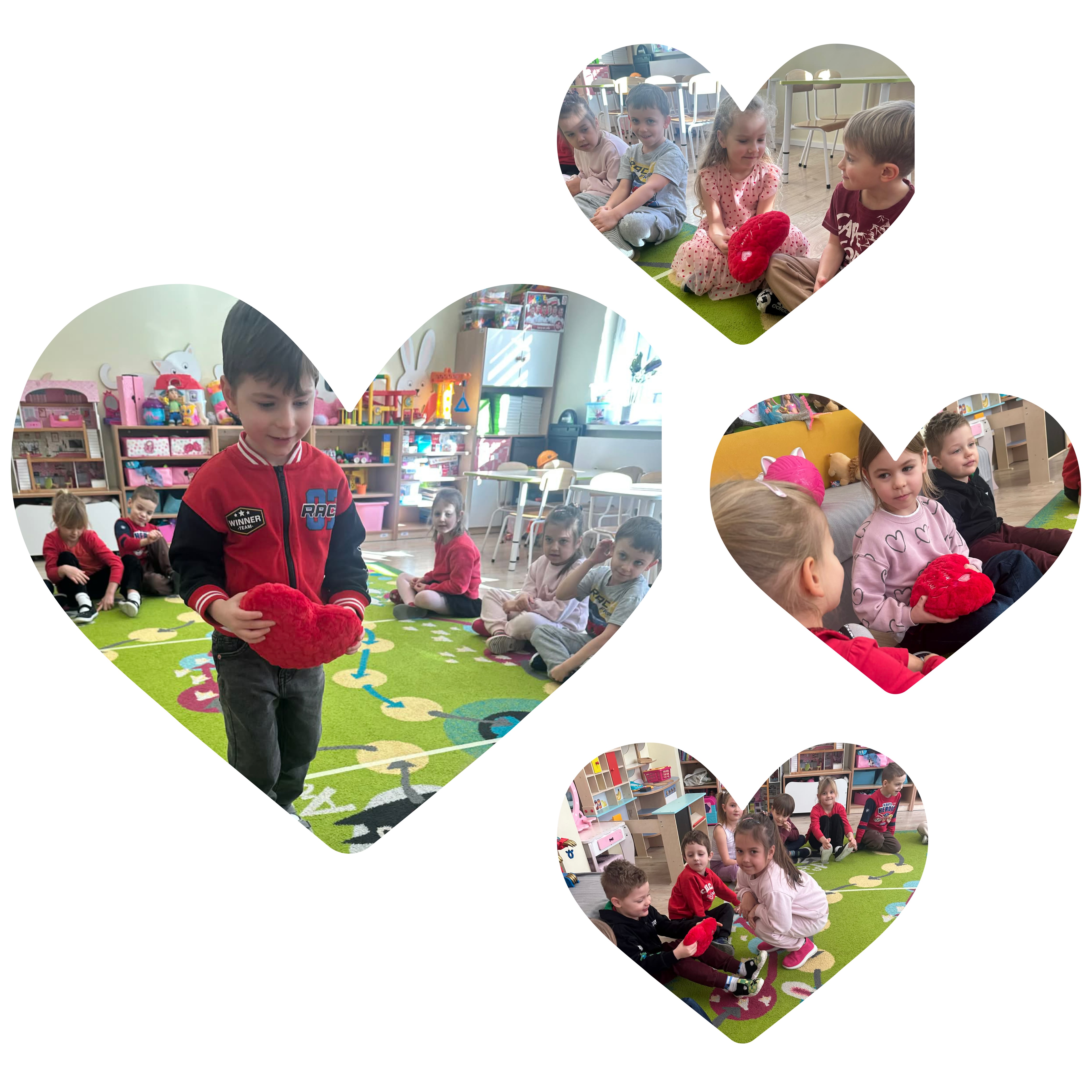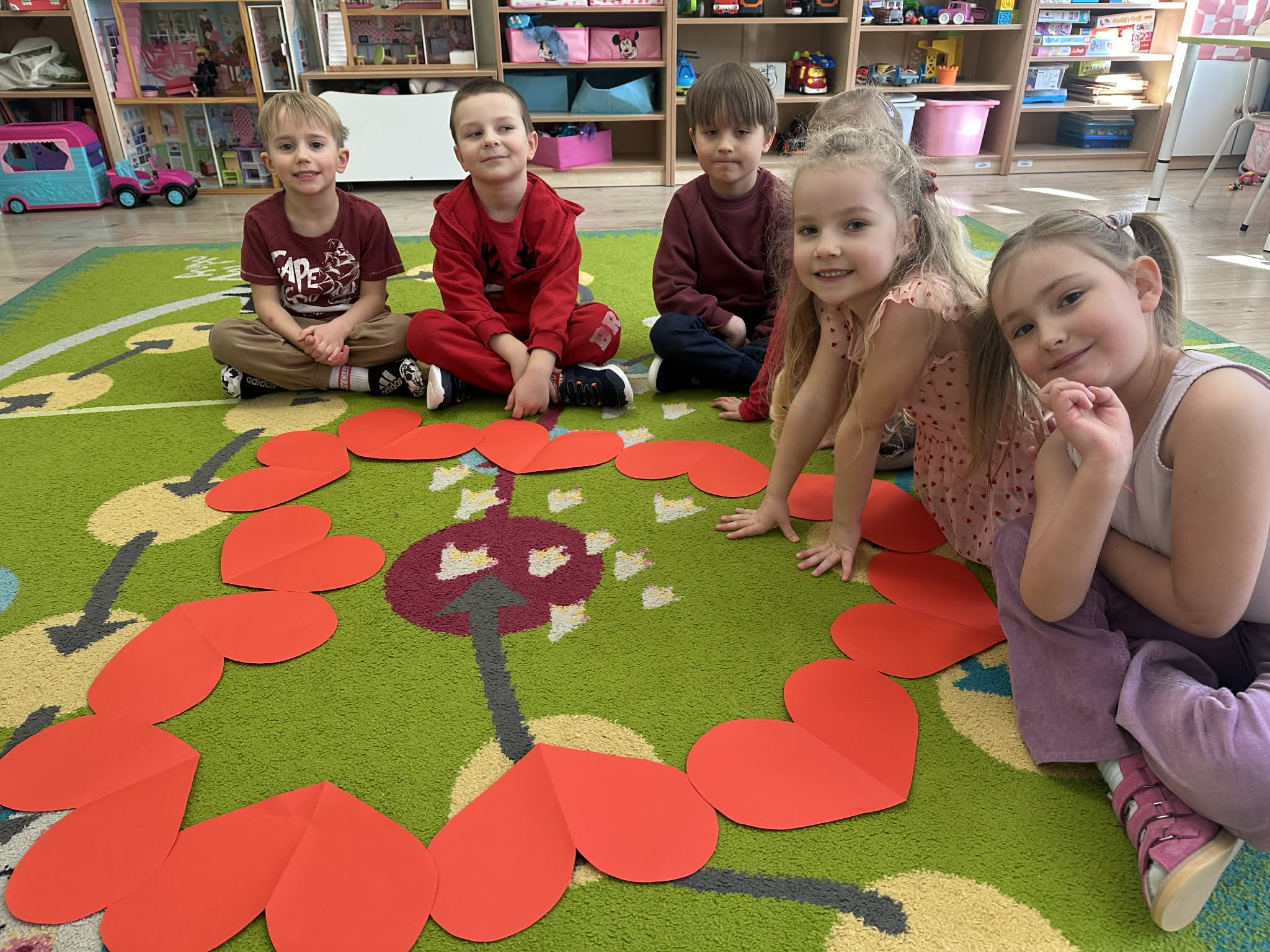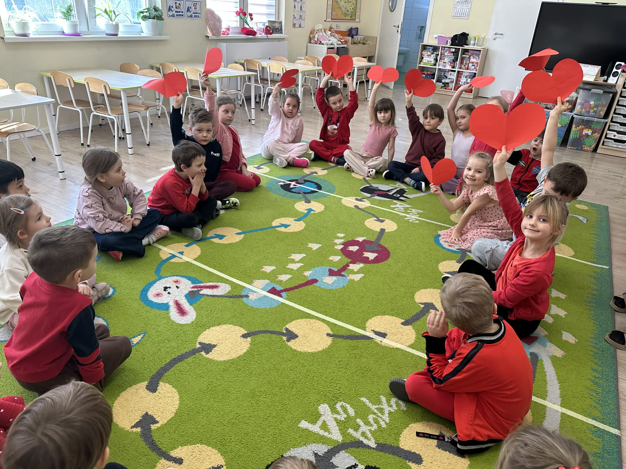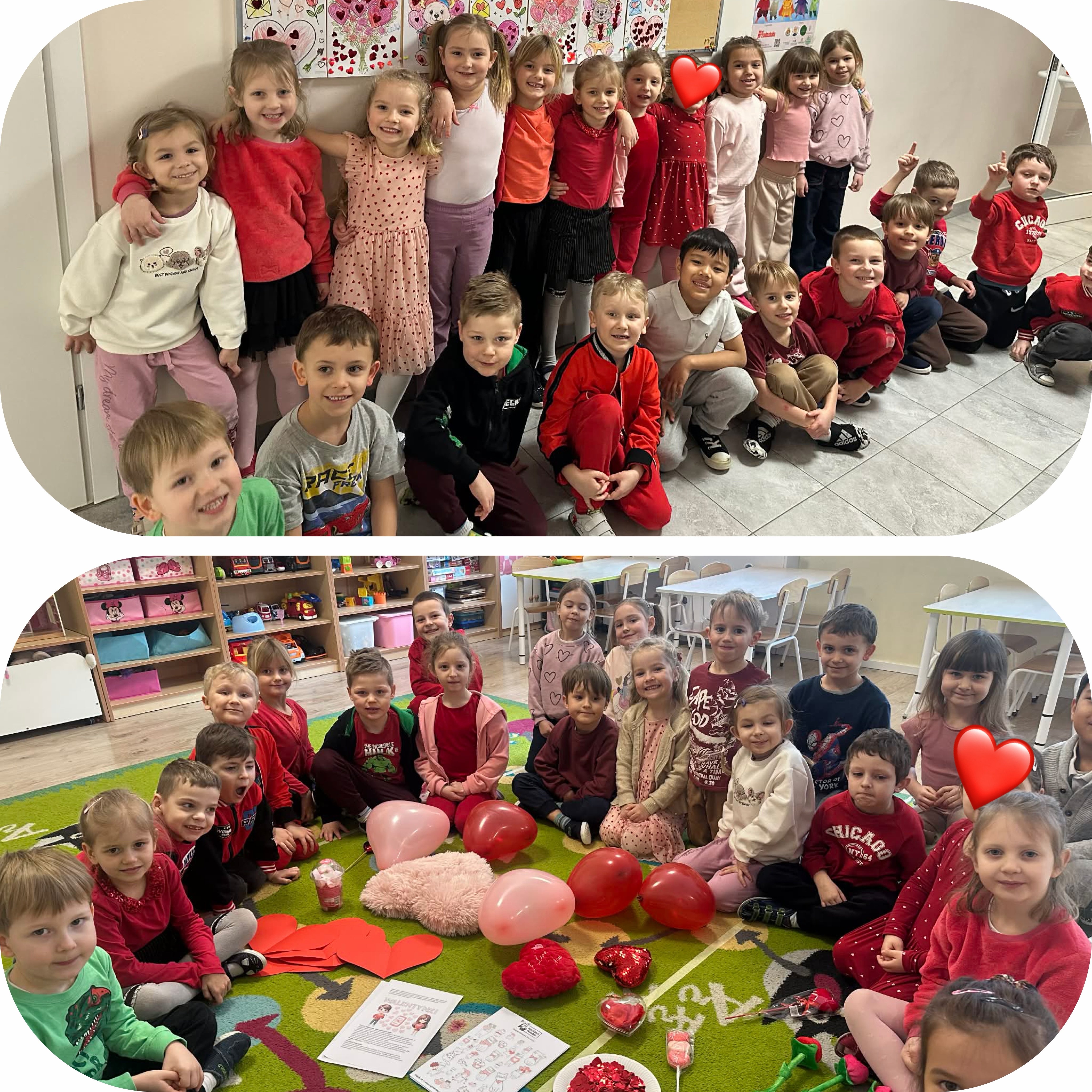 Rozmawialiśmy o przyjaźni, życzliwości oraz o tym, jak ważne jest okazywanie sobie sympatii. Podkreśliliśmy, że miłość i dobroć należy okazywać każdego dnia, a nie tylko w Walentynki. Przedszkolaki z radością uczestniczyły w zabawach integracyjnych i tańcach przy muzyce. Nie zabrakło również prac plastycznych – dzieci wykonały kolorowe serduszka oraz walentynkowe kartki dla swoich kolegów i koleżanek. To był dzień pełen uśmiechu, miłych słów i serdecznych gestów, który na długo pozostanie w naszej pamięci.